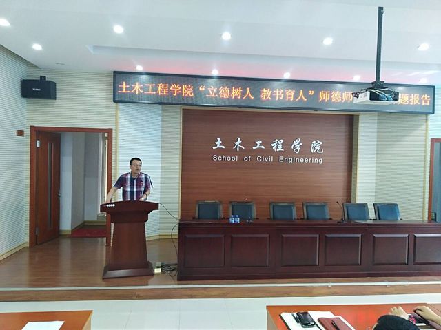为深入学习贯彻“习近平新时代中国特色社会主义思想”和“党的十九大精神”、全面推进“两学一做”学习教育常态化、制度化的重要指示精神,结合党的十八届三中全会通过的《中共中央关于全面深化改革的若干重大问题的决定》中提出的有关“立德树人”的指示精神与《yl23411永利集团官网加强和改进师德师风建设实施方案(试行)》文件精神。yl23411永利集团官网组织开展了“立德树人、教书育人”师德师风建设专题培训方案及网络培训学习计划系列活动,培训旨在进一步提升教师思想政治素质,培育优良师德师风,让广大教师坚定理想信念,增强爱国情怀和敬业精神;进一步提高广大教师法治素养,引导广大教师廉洁从教、依法执教,遵守学术规范;进一步激发广大教师的职业荣誉感和教书育人的积极性、创造性,使师德素养内化于心、外化于行。7月12日下午14点,yl23411永利集团官网力学教研室贾杰副教授为全院教师做了关于“‘立德树人、育人为本’,做新时代党和人民满意的好教师”的专题报告。