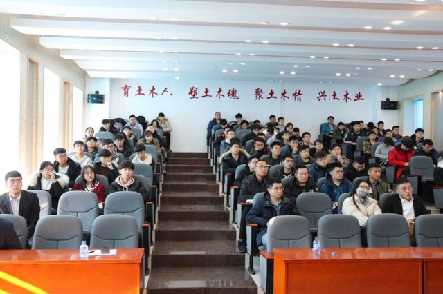 教师聘任仪式结束后,中建二局东北分公司副总经理高安培、中建二局东北分公司人力资源部经理刘超分别以《对建筑行业的初步认识》《中建二局青年人才培养》为题进行讲座。
