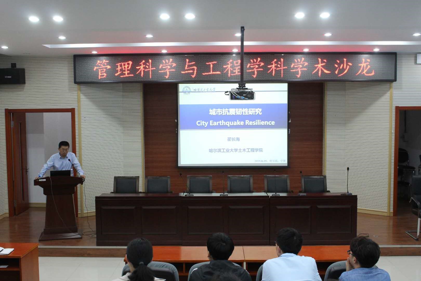 2019年6月5日下午14:00,管理科学与工程学科在主东301教室成功举办了第4期学术沙龙。本期主题为城市抗震韧性研究的前言与挑战。此次报告有幸邀请到哈尔滨工业大学教授、博导,国家杰出青年基金获得者翟长海教授。报告由刘洁老师主持。