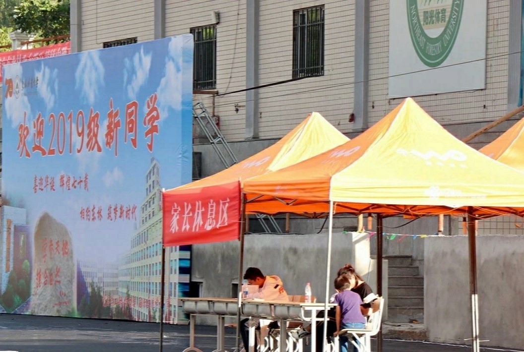 家长在一旁耐心地等待。谁言寸草心,报得三春晖!父母为了我们奔波劳累,希望我们小萌新们来到新校园里都能不负韶华。