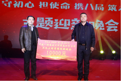 在中场环节,中建八局黑龙江分公司总经理刘继锋发表讲话并为我们捐助赞助款。