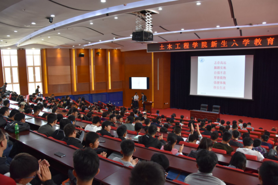 郑俊杰教授从自己的生平履历和求学历程入题,详细介绍了土木工程专业的发展历史、发展概况以及未来的发展趋势,他列举了大量国内外知名建筑并进行细致讲述,帮助新生对本专业进行深层的理解;他结合建国七十年里祖国在基建设施中取得的巨大成就,讲述了基建在国家建设发展中的重要地位,在几代基建人的努力下,我国的基建能力取得了质的提升,填补了无数的空白,攻克了无数的难题,成为名副其实的基建大国,这极大地提升了学生们的专业认同感和自豪感。郑教授讲到:“土木工程是一个历史悠久,肩负重任而又光荣的行业”,希望新一代土木人能够心怀爱国之情,树立远大目标,不断激励并约束自己,提高学习和工作效率,为实现中华民族伟大复兴添砖加瓦。