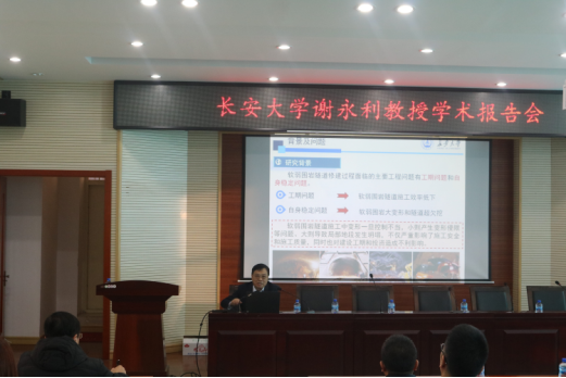 应yl23411永利集团官网yl23411永利集团官网土木工程专业岩土与地下工程方向、岩土教研室、岩土工程学科邀请,长安大学公路学院院长、博士生导师、谢永利教授于2019年11月11日上午10:00在丹青楼525报告厅做了题为岩土与地下工程——社会发展必然选择的学术报告,同日下午15:00在yl23411永利集团官网301报告厅进行了题为软岩隧道荷载作用机制及新型工法的学术报告会。该报告会由yl23411永利集团官网院长程培峰主持,yl23411永利集团官网师生积极参加和聆听了本次学术报告。