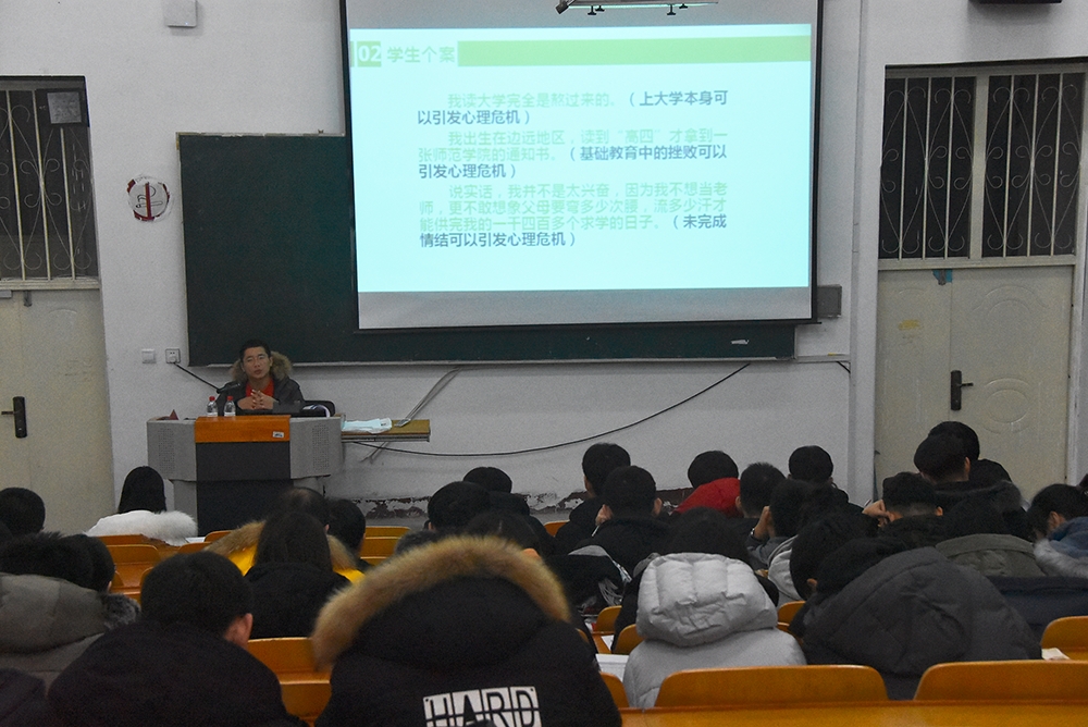 讲座开始之前,孙大为老师介绍了本次活动的主题并简要阐述了心理危机识别的重要性,接着孙大为老师分四部分为同学们讲述了本次讲座的具体内容。