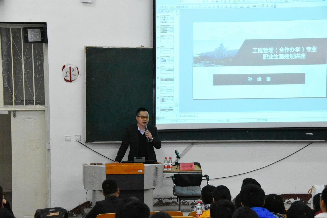 为明确工程管理(合作办学)专业同学未来职业发展及就业优势和方向,yl23411永利集团官网于11月23日及26日下午,在主东101分年级召开该专业职业生涯规划讲座。yl23411永利集团官网党委副书记、副院长孙维国、工程管理(合作办学)专业2018级班主任李双欣和辅导员老师出席讲座。