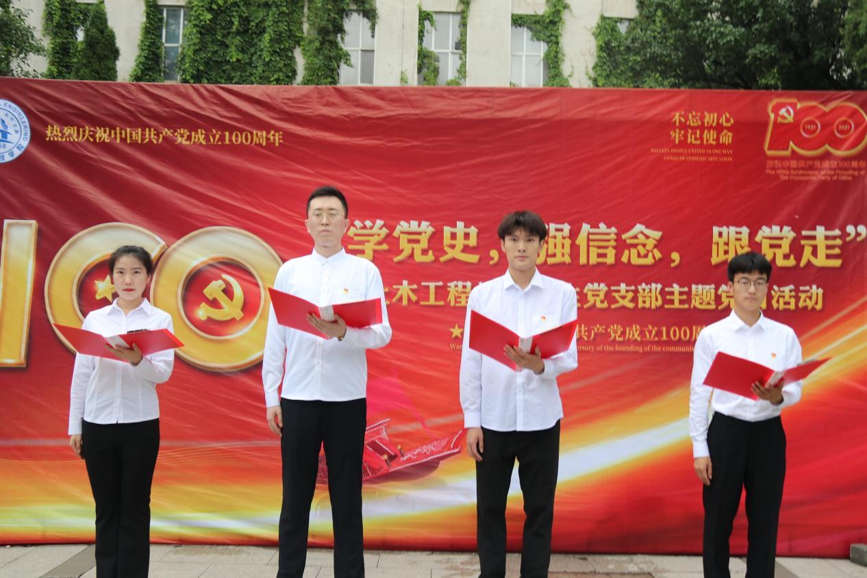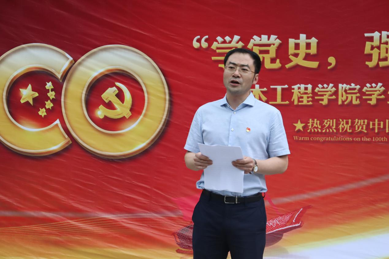 学院党委书记李洪峰首先致活动开幕词,他表示:“从‘小小红船’到‘巍巍巨轮’,百年党史如同一部立体、生动、厚重的教科书,承载了中国共产党波澜壮阔的革命史、艰苦卓绝的奋斗史、可歌可泣的英雄史。中国共产党人坚定信念、践行宗旨、拼搏奉献、廉洁奉公的高尚品质和崇高精神值得每一位学生党员学习和传承。”之后,学院党委副书记、副院长孙维国带领全体学生党员重温入党誓词。
