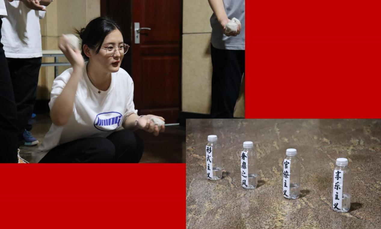 活动现场,同学们击倒的4个水瓶分别代表“形式主义、官僚主义、享乐主义、奢靡之风”,旨在告诉所有同学全党必须坚决反对形式主义、官僚主义、享乐主义和奢靡之风,特别是要防范和查处各种隐性、变异的“四风”问题,把落实中央八项规定精神常态化、长效化。