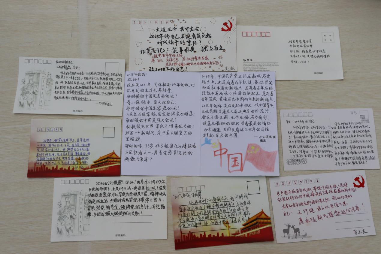 2035年是我国基本实现现代化的节点,展望未来,我们无限憧憬。活动现场,每一位同学都认认真真、一笔一划的写下未来的美好愿景,表达了对2035年的自己的期待,对国家的期待。小小的明信片承载了满满的希望,不久的将来,我们会成为历史的见证者,此刻,跨越时空,我们与未来对话。