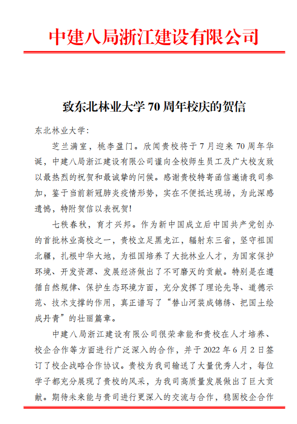 盛世盛夏,喜逢华诞,七十载辛勤,硕果累累;七十载风险,哺育芳华;七十载辉煌,桃李满天下。在校庆倒计时1天之际,我院友好单位的贺信纷至沓来。真诚的祝福,恳切的希望,温暖了东林人拼搏时光,也赋予了东林土木人开拓未来的力量。这些贺信贺电是我们莫大的财富,全院师生将把贺信贺电中的肯定和鼓励,化为继续进取的力量,共同推进东林土木事业又好又快的发展。
