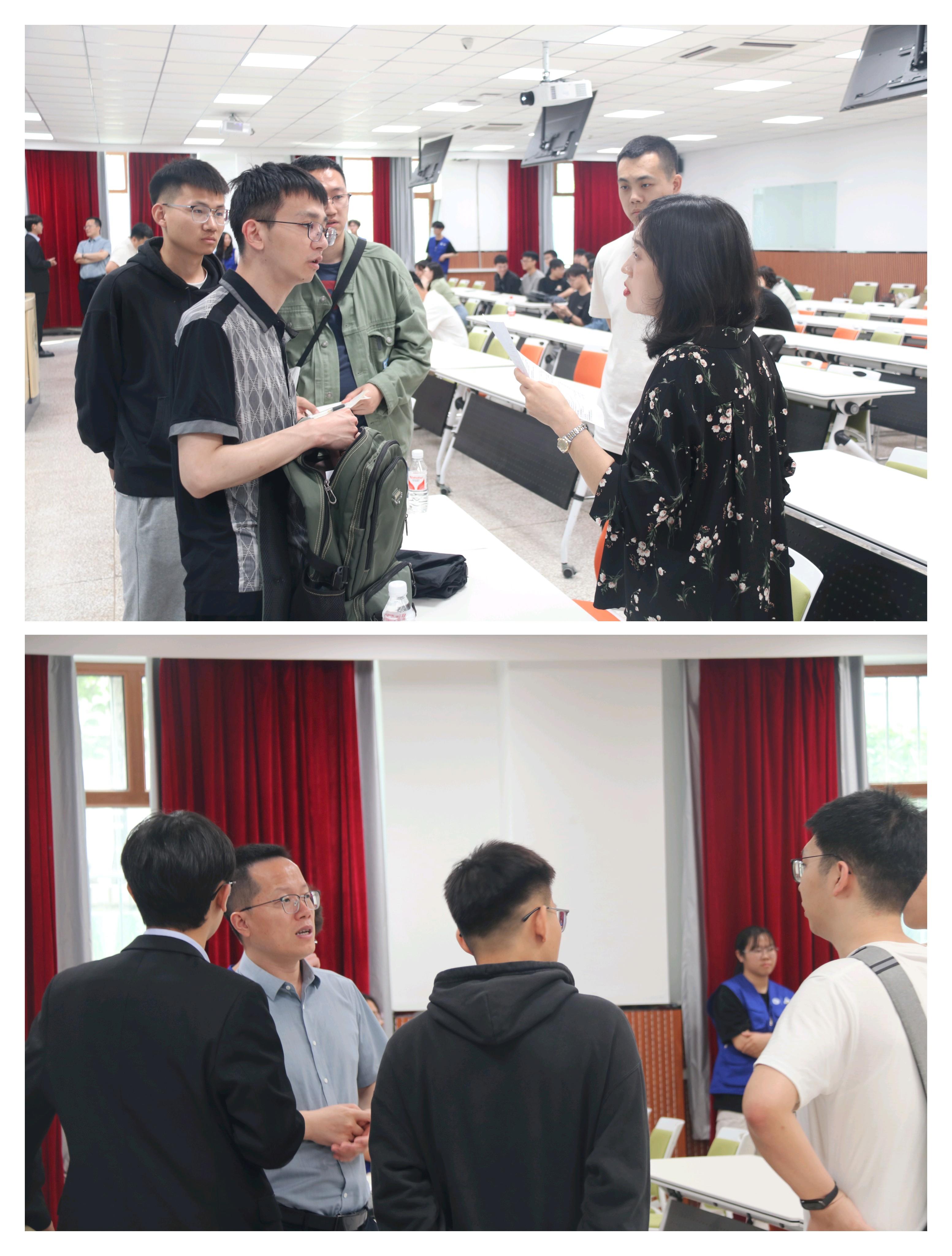 双选会招聘会现场秩序井然,同学们则手持精心准备的简历,怀着满腔的热情积极参与到面试当中。每一间教室里都挤满了前来应聘的同学,眼中闪烁着渴望与期待的光芒,等待着与企业进行深入沟通的机会。