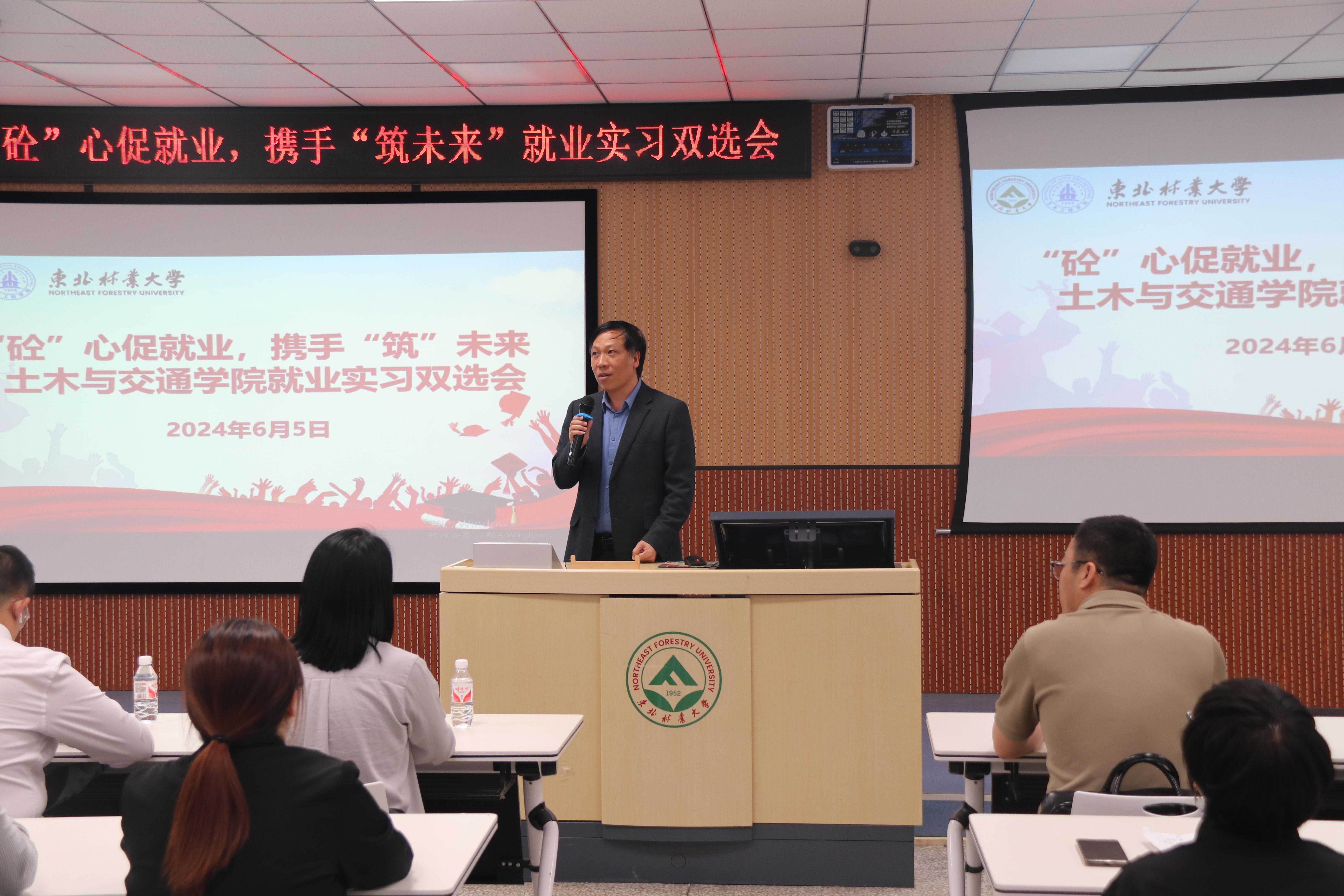 双选会邀请到山东省路桥集团有限公司、上海宝冶集团有限公司北京分公司、中建一局华北公司、中建八局二公司、哈尔滨市市政工程设计院有限公司5家单位参与招聘,学院领导高度重视,院长谢启芳在双选会现场致辞。