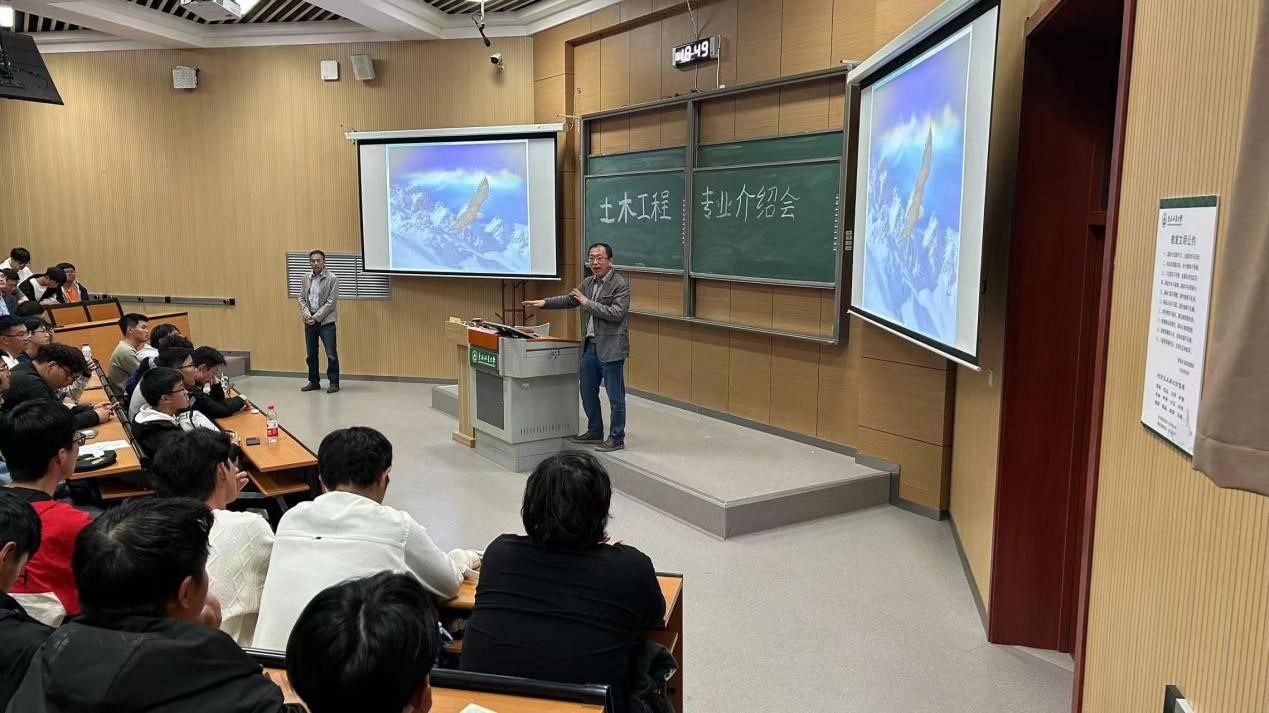 为引导2024级新同学了解专业情况及行业发展、坚定奋斗目标,引导全体新同学以积极饱满的精神状态开启大学学习生活,yl23411永利集团官网于9月27日18:00在锦绣楼T502顺利召开2024级土木工程专业介绍会,韩春鹏教授、李国东副教授、崔高航副教授共同出席了本次会议,他们携手为新同学们详细介绍土木工程专业相关情况。