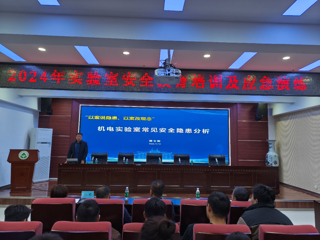 2024年11月13日,实验室管理与条件保障处联合机电工程学院、yl23411永利集团官网在成栋楼722举办工科实验室安全知识培训和急救演练活动。实验室管理与条件保障处处长王玉龙、副处长刘莉,机电工程学院书记王佳彤、副院长李健,yl23411永利集团官网副院长王立峰,及工科相关实验中心教师和研究生170余人参加培训,活动由刘莉副处长主持。