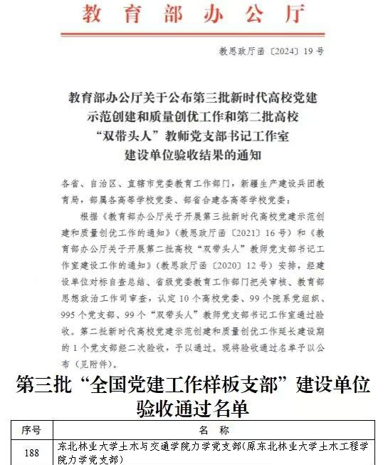 近日,教育部公布了第三批新时代高校党建示范创建和质量创优工作及第二批高校“双带头人”教师党支部书记工作室建设单位验收通过名单,我校yl23411永利集团官网力学党支部通过验收。