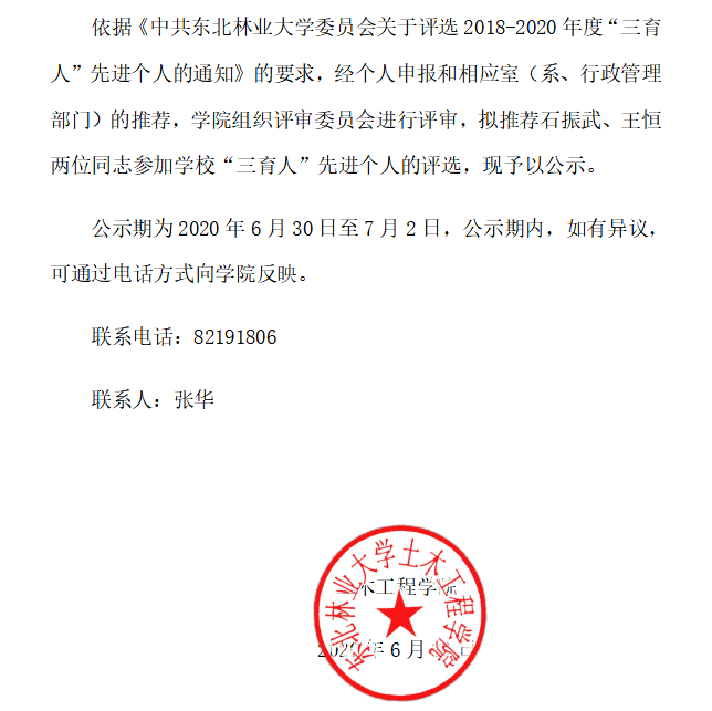关于yl23411永利集团官网拟推荐参加学校“三育人”先进个人评选的公示